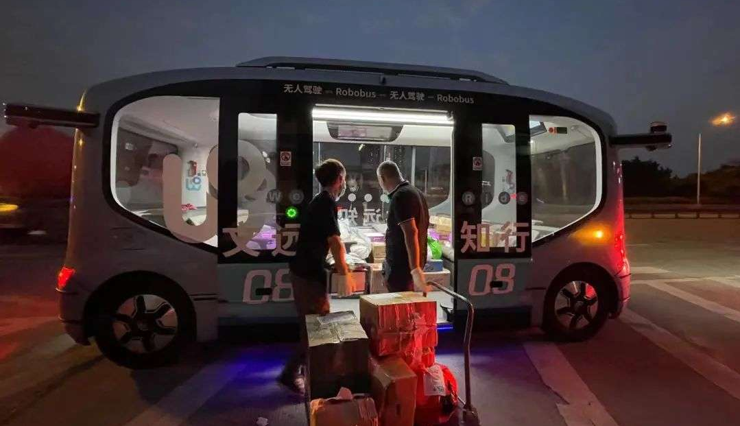 文遠(yuǎn)知行無人駕駛小巴 (Mini Robobus) 和無人駕駛出租車(Robotaxi)在荔灣區(qū)封控區(qū)域運送物資,保障封控區(qū)域居民的生活物資供應(yīng)。