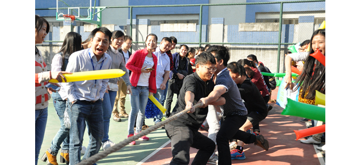下午14:30分左右,在激昂的音樂聲中,拔河比賽拉開了序幕:首先,各隊隊長帶領(lǐng)隊伍依次進(jìn)場,各隊隊員用自己的全部熱情報出了各自的隊名和口號,掀起各隊之間相互鼓勵及贊揚(yáng)的掌聲;接著,由副總裁張勇總致開幕詞,張總對此次比賽的開展給予了肯定,并對參加比賽的各隊寄予了厚望。