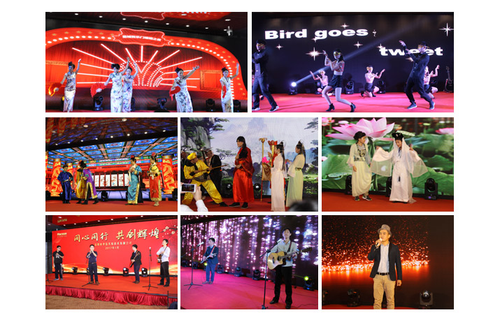 接下來(lái),一首振奮人心的歌曲串燒拉開(kāi)了聯(lián)歡晚會(huì)的序幕,吶喊出了我們?nèi)A信人的性情。華信各子公司的伙伴們也帶來(lái)了形式各異、讓人目不暇接的表演,舞蹈、小品、吉他彈唱、歌唱等。華信家人們各個(gè)才華橫溢、充滿(mǎn)了活力,在華信人的舞臺(tái)上,才華和個(gè)性得到了最大的詮釋和釋放,盡情的凸顯自己,展示自己。不僅給大家?guī)?lái)了歡聲笑語(yǔ)同時(shí)也讓同事之間彼此的心更加貼近。大家歡聚一堂共進(jìn)晚餐,整個(gè)年會(huì)現(xiàn)場(chǎng)充滿(mǎn)了激情、熱烈、溫馨、歡樂(lè)的氣氛。