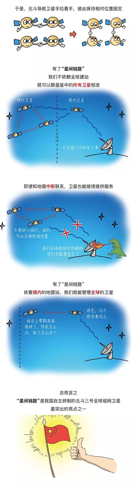 11月5日,中國自主研制的北斗三號雙星成功發(fā)射。從此,導(dǎo)航衛(wèi)星們可以在太空中輕松“互撩”,在不依靠地面站的情況下,衛(wèi)星之間通過“星間鏈路”提供精準(zhǔn)定位和授時(shí)。未來的無人駕駛技術(shù)、建筑測繪都離不開這條神奇的“天路”。