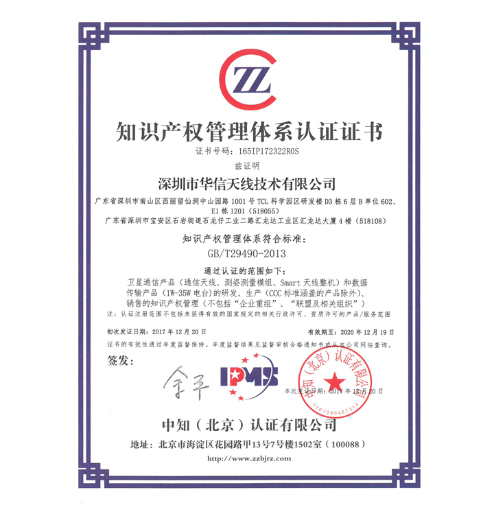 2017年華信成功獲頒知識產(chǎn)權(quán)管理體系認(rèn)證(證書編號: 165IP172322R0S),這意味著公司在知識產(chǎn)權(quán)創(chuàng)造、運用、保護(hù)和管理能力等方面邁入新階段,同時在研發(fā)設(shè)計、采購、生產(chǎn)和銷售等各環(huán)節(jié)所涉及的知識產(chǎn)權(quán)相關(guān)管理工作也更加規(guī)范化、科學(xué)化。自2008年公司成立,華信知識產(chǎn)權(quán)工作也一直是公司戰(zhàn)略課題之一,依托于科學(xué)的知識產(chǎn)權(quán)管理體系,逐步實現(xiàn)華信的可持續(xù)化發(fā)展之路。
